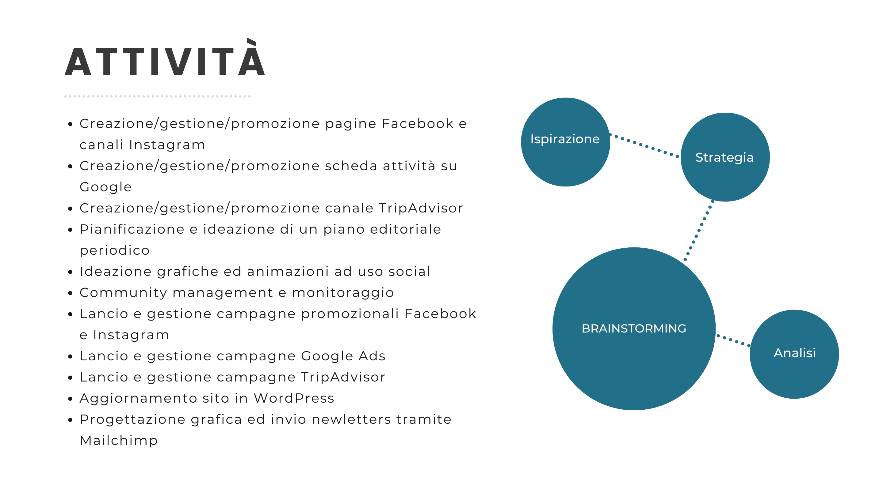- Brief per individuazione obiettivi, definizione della strategia e analisi dei contenuti esistenti.
